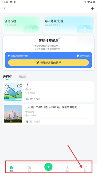 1、打开旅行行程规划类应用,点击底部我的选项,进入个人中心页面。