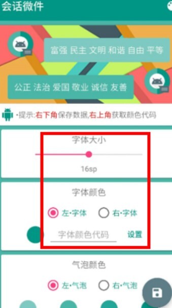 进入右上角设置,选择合适的字体样式与气泡颜色。