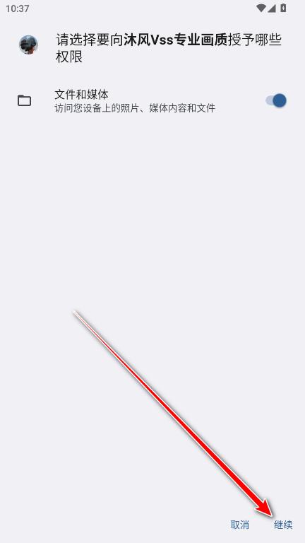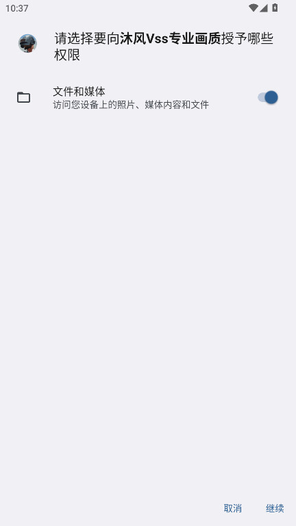 1、打开沐风Vss专业画质应用后,点击界面右下角的“继续”按钮,即可进入主功能区域。