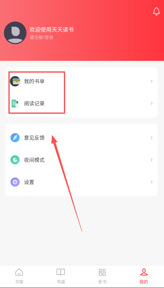 3、在“我的”页面中,有一个“阅读记录”功能,它可以帮你记住昨天读的是哪本书,以及读到了第几章。