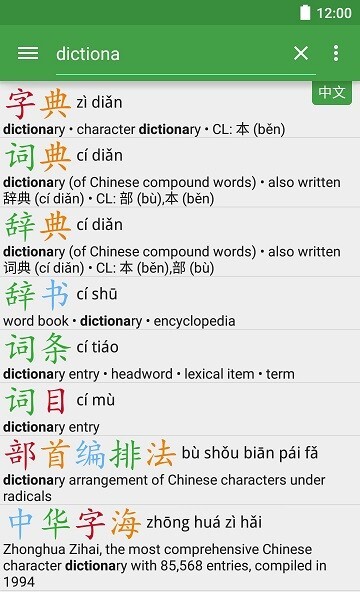 1、灵活的查字方式:可支援英文、中文或汉语拼音输入进行搜寻。