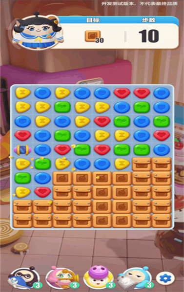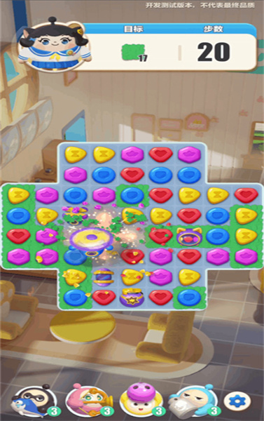游戏的核心玩法围绕消除展开,涵盖滑滑三三消除、爆炸消除、飞行消除等多种形式,玩家可通过这些消除方式提升角色等级,并灵活运用各类道具。