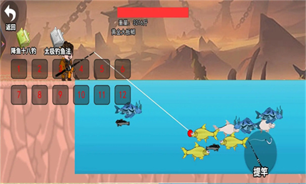 3、滑动屏幕中的元素,进行钓鱼闯关