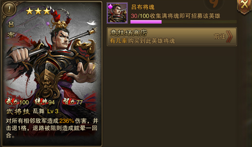 (重骑兵)吕布,三星武将,乱舞伤害在前期看来相当不错,前期能有幸得到吕布将会是相当不错的。