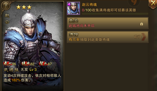 (陷阵兵)陷阵兵和禁卫军可以说是伤害最高的近程兵,许褚为新手引导获取武将。后期可用赵云替代,成为伤害高的前排。