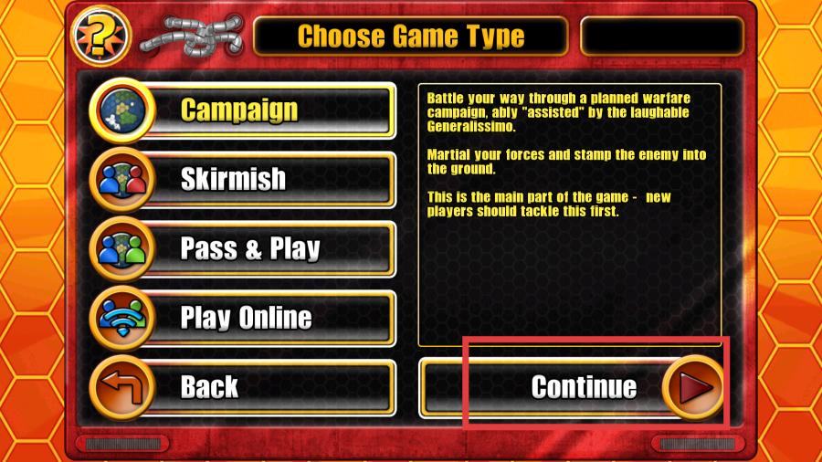 2、进入游戏类型选择界面后,界面上会呈现各类游戏类型选项,每个选项都配有对应的图标与说明,点击Continue按钮,即可进入游戏场景加载界面。