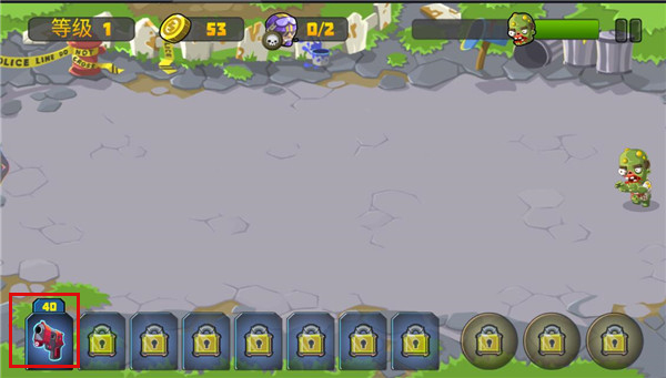 3、把枪支拖拽到地图上射击僵尸,只有消灭掉所有僵尸才能通关。