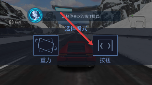 1、选择自己喜欢的操控模式,可以点击右侧按钮的选项,以虚拟方向键来进行控制车辆转向。