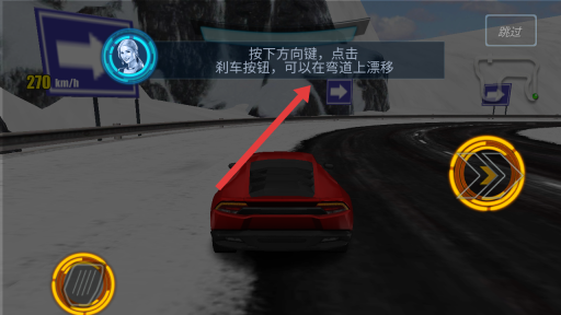 3、进入赛车弯道时,同时按住方向键与左下角刹车按钮,触发漂移,维持车速与轨迹稳定。