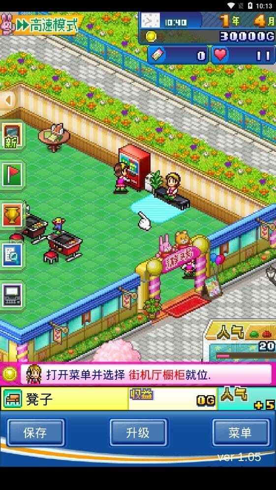 玩家可以通过购买各类游戏机来赚钱,而装饰能够提升自身的人气。