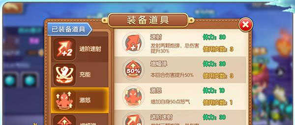 怒气值(战斗中可见):怒气值由0开始到100,被攻击到和发射炮弹的时候可以增加(道具“激怒”也可,增加50,发射炮弹增加10),满了之后可以使用武器的必杀技能。