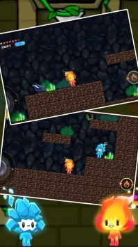 1、游戏简单,易于操作,可爱的冰火人,卡通艺术画面让人欲罢不能。