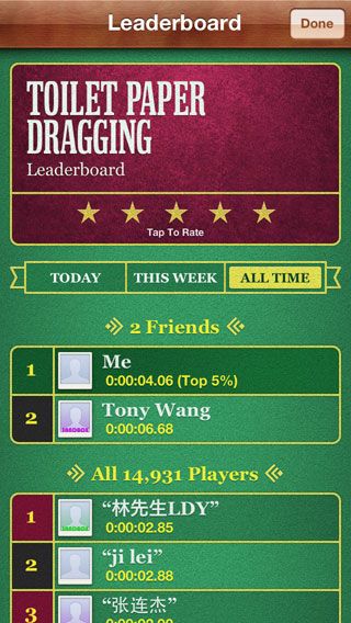 这款游戏能让你体验腹泻时和厕纸“较劲”的感觉!你可以不断从厕纸卷上扯出厕纸,和自己或朋友比拼——谁能用最短时间完成,谁就是最厉害的厕纸“快手”,马上就能拥有吹牛的底气!而且不用在现实里浪费真厕纸,是不是超有趣?