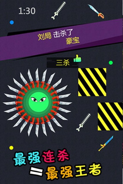 画面里除你之外全是敌人,你得时刻警惕其他玩家的攻击,在这片群雄逐鹿的地图上收集各式刀剑,感受刺激的游戏过程。