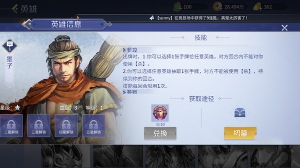 1、随机英雄石碎片获得方法一:登录游戏,点开“招贤馆”进行英雄招募。千里和万里金币招募或招贤令招募随机掉落4x或5x英雄石碎片。
