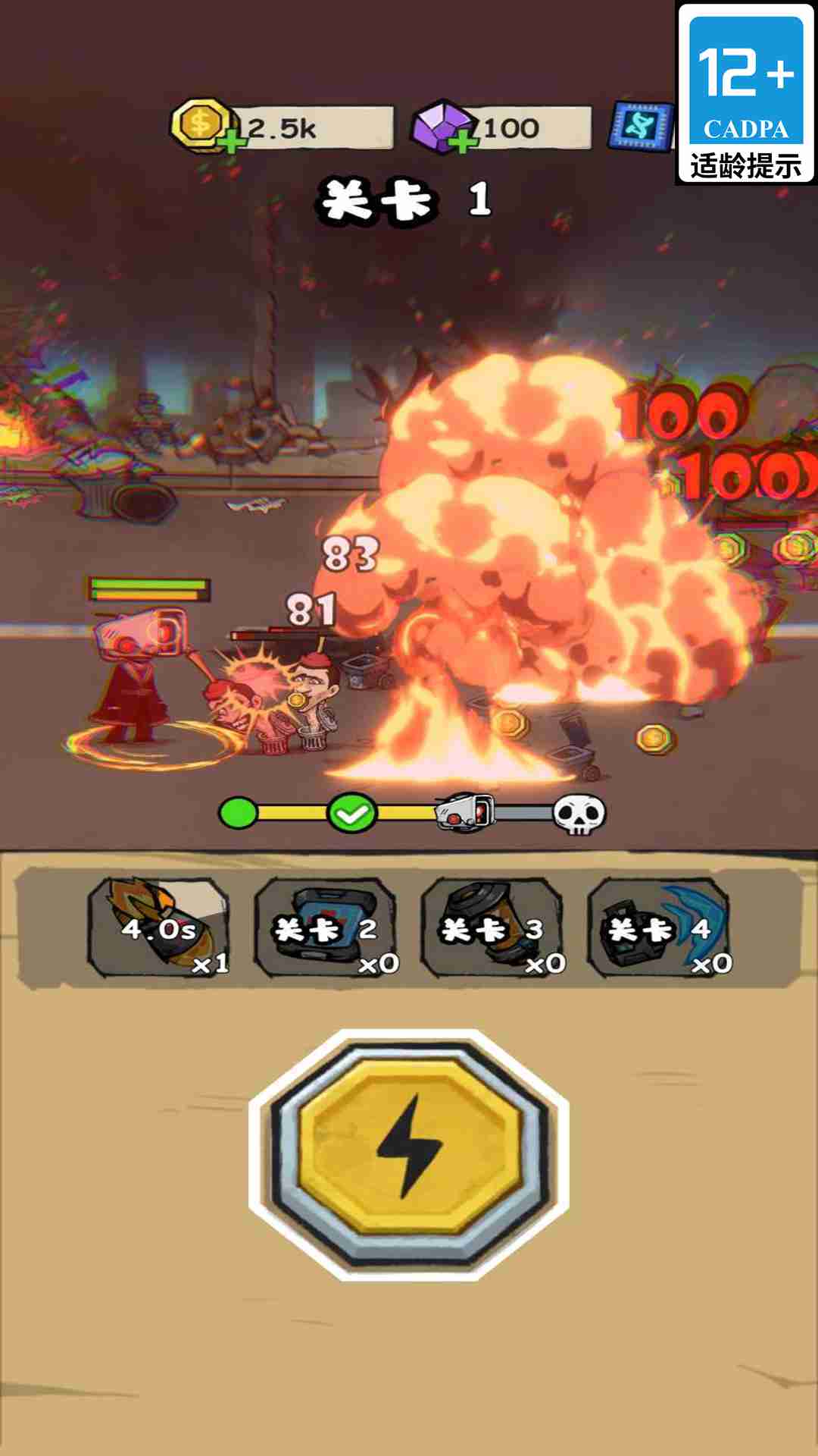 4、挑战关卡中的巨型马桶怪,获得关卡奖励,随机道具钻石金币都有。
