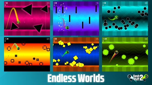 1、多元关卡世界:9个由程序生成的多彩无尽世界,每个世界都遍布未知挑战,障碍的几何形状与行为各不相同,为玩家带来源源不断的新鲜感。