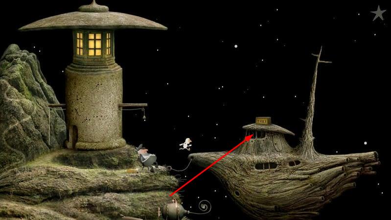 2、冒险进行到中途时,在飞船场景里点击人物,会触发被树抓取的情节;接着把左边树上的虫子移到那棵抓人的树的顶部,解救出被困的人物后,就能进入下一个场景了。