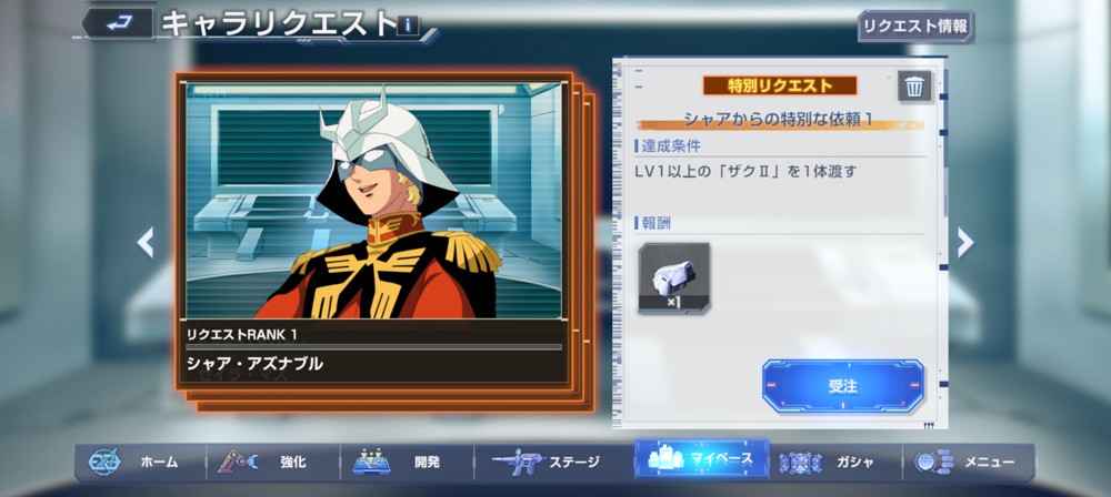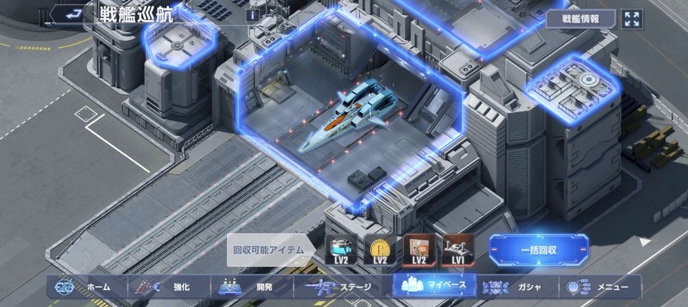 个人基地包含了各项功能,将成为玩家的据点。透过「战舰巡航」可每隔一段时间获取 AP 或道具;接受角色委託,完成「角色要求」则可获得报酬。