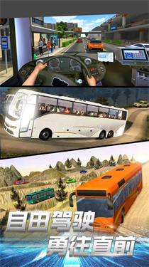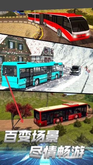 2、切换“百变场景”,驾驶巴士挑战山路、雪地等地形,借虚拟按键控方向、油门,适应不同路况。