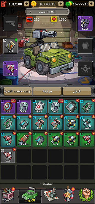 2、在游戏开始前,我们可以给自己的战车添加零件来提升战斗力;