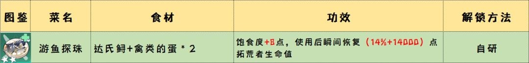 < 绿品2星:使用后可瞬间恢复(14%+14,000)点拓荒者生命值与8点饱食度(已校对)="">