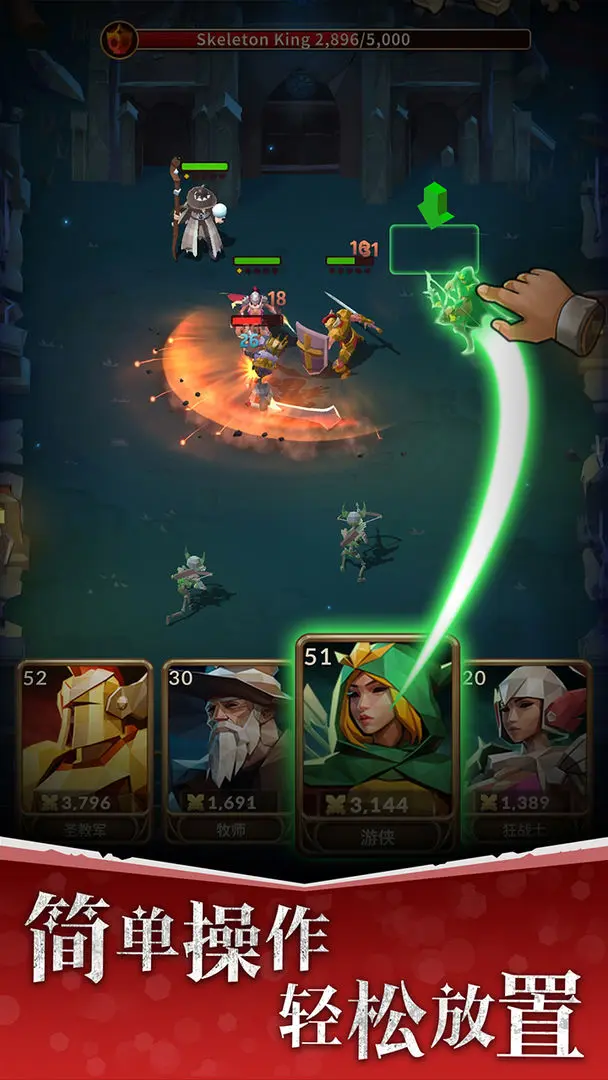 在做好前期计划之后,您只需要放松身心,观看英雄们自动的在不同地图上同怪物战斗即可。是的,在这款游戏的战斗中,您不需要做过多的操作,将一切交给英雄们吧!