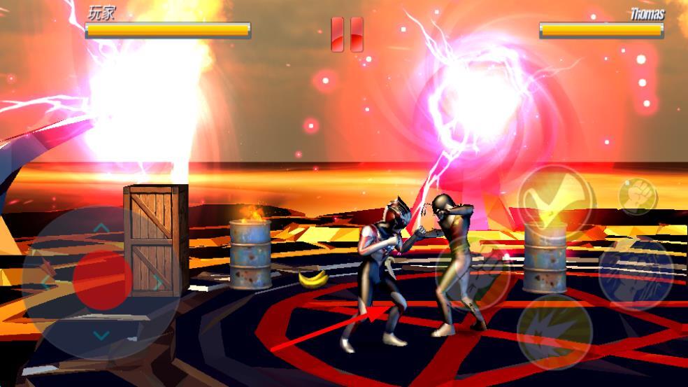 1、进入游戏后,选择初始奥特曼角色,在格斗界面通过虚拟摇杆控制移动,点击攻击按钮释放基础招式,熟悉不同按键组合的连招效果。