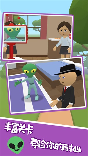 3. 找到外星人后还能和他一起玩耍,他外表看起来有点吓人,内心却十分善良,能和你一同解锁更多好玩的游戏内容。