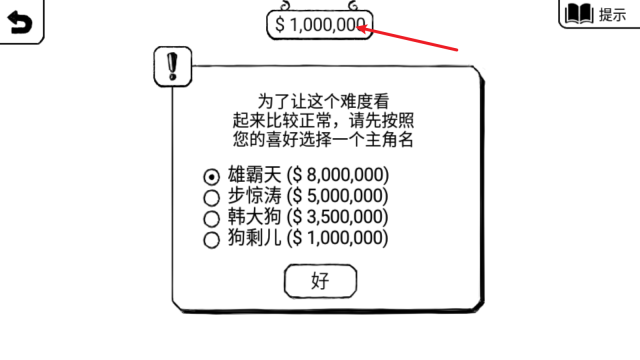 1、正式进入游戏后,玩家需要为自己选择一个主角名称,不过这里的关键并非取名环节,而是界面上方显示的初始资金——仔细观察会发现数值是1000,玩家只需点击一下这个数字,它就会变成1000000了。