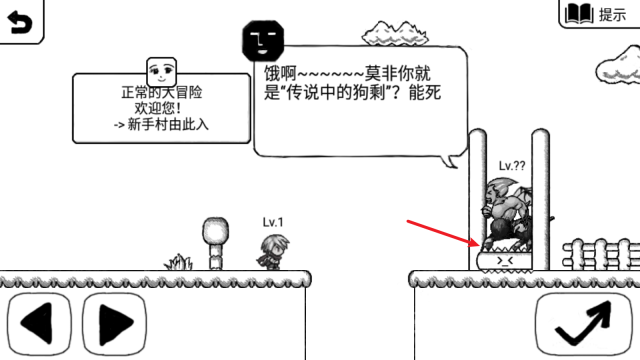 5、穿过前面的障碍后,会回到第一关的BOSS处,以我们目前的能力,无论是攻击还是防御都无法与之抗衡,所以选择逃跑,然后直接往左跑。