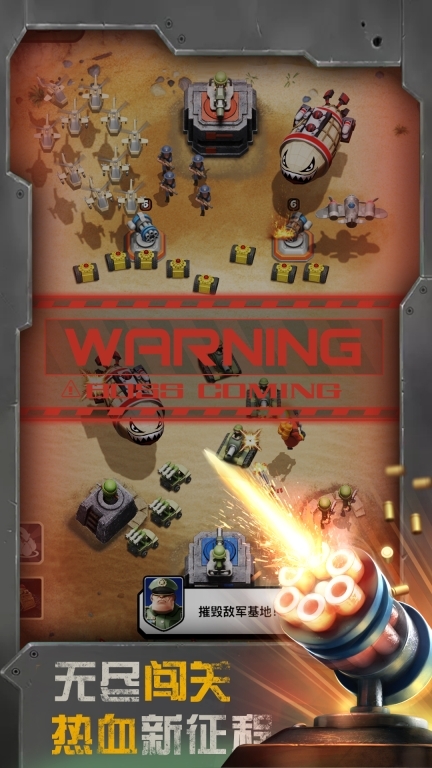 全新推出战役挑战模式,各路将军BOSS组成强大阵容,精心设计层层挑战关卡。玩家需击败这些强敌,逐步打造专属的卡组配置与科技树,尽情体验紧张刺激、原汁原味的战争乐趣。