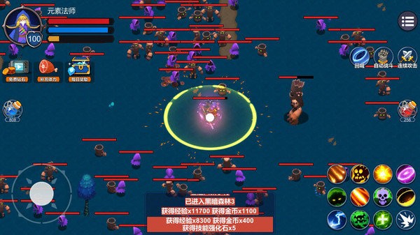 2、魔法解锁:在游戏进程中收集宝石与金币,以此解锁全新技能,增强自身实力,从而能够更好地应对更高级别的敌人。
