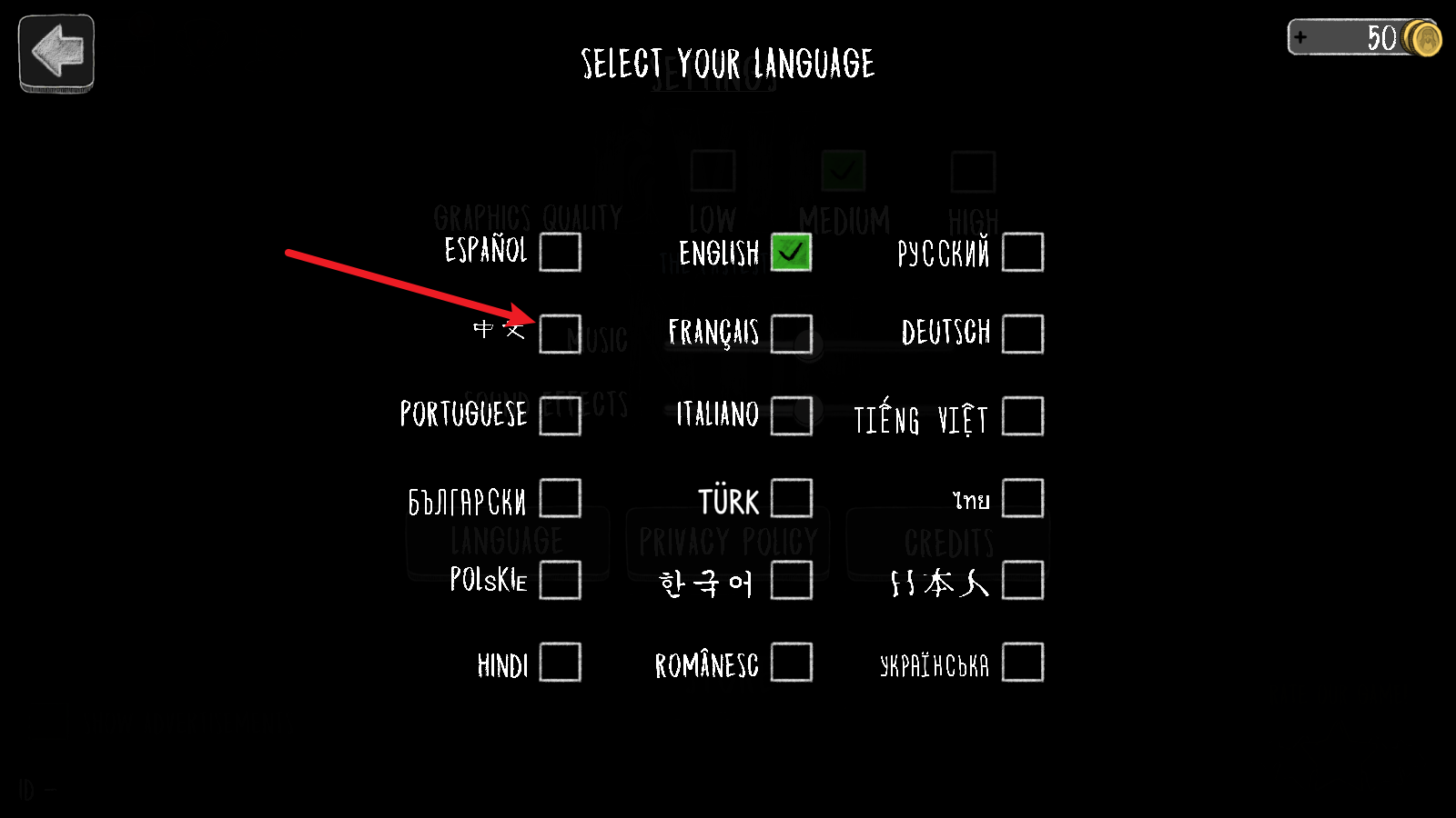 进入游戏后,若未默认设置为中文,可点击左上角的齿轮图标进行语言设置。