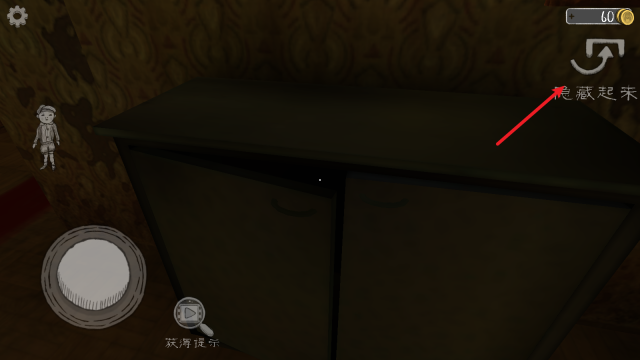 当靠近可躲避的物品时,右上角会弹出对应的按钮,点击该按钮就能把自己隐藏起来。