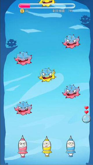 2、游戏围绕消灭细菌、守护身体健康展开,能让玩家体会到健康的重要性,同时通过持续升级和开启新关卡,充分调动玩家的挑战热情。