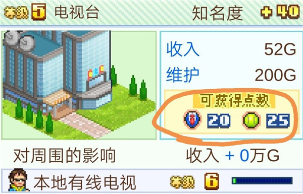电视台推荐升满,作为前中期建筑,它能提供20件衣服和25个棒球,点数相当高。有条件的话,前中期可以建造三到四个电视台来刷点数。