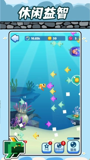 3、点击冒泡即可生成小鱼,也可以通过升级提升效率。