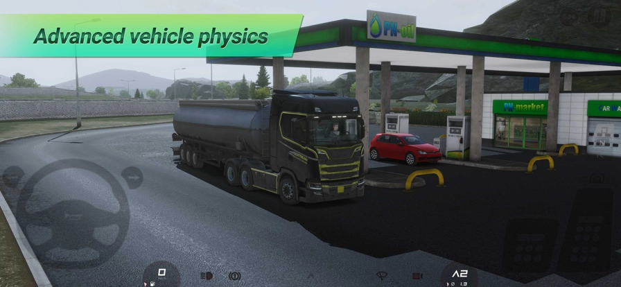 卡车的驾驶体验十分逼真,车内设有多个功能按键,通过简单操作即可切换至不同区域,从而顺利完成各项订单任务。