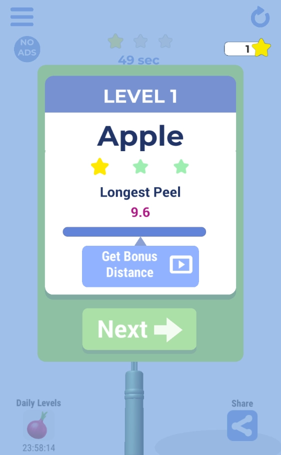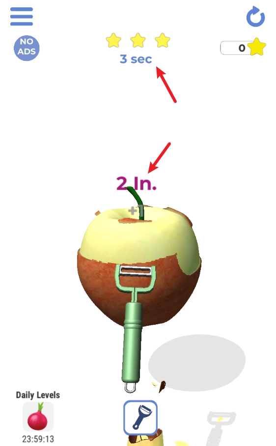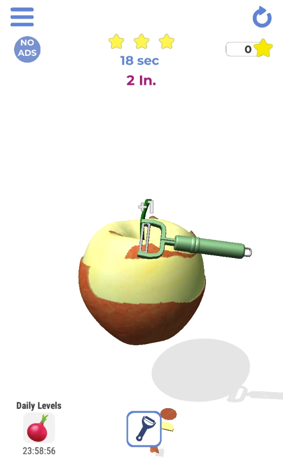 1、轻松解压的游戏体验,只需用工具一键削去水果皮,看着自己削出的超长果皮,满满的成就感油然而生。