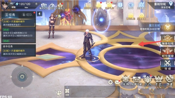 2、进入场景后,各位冒险者就能看到详细的玩法说明和传送口,踏入传送阵后就能进入玩法界面(永恒之境小镇)啦!