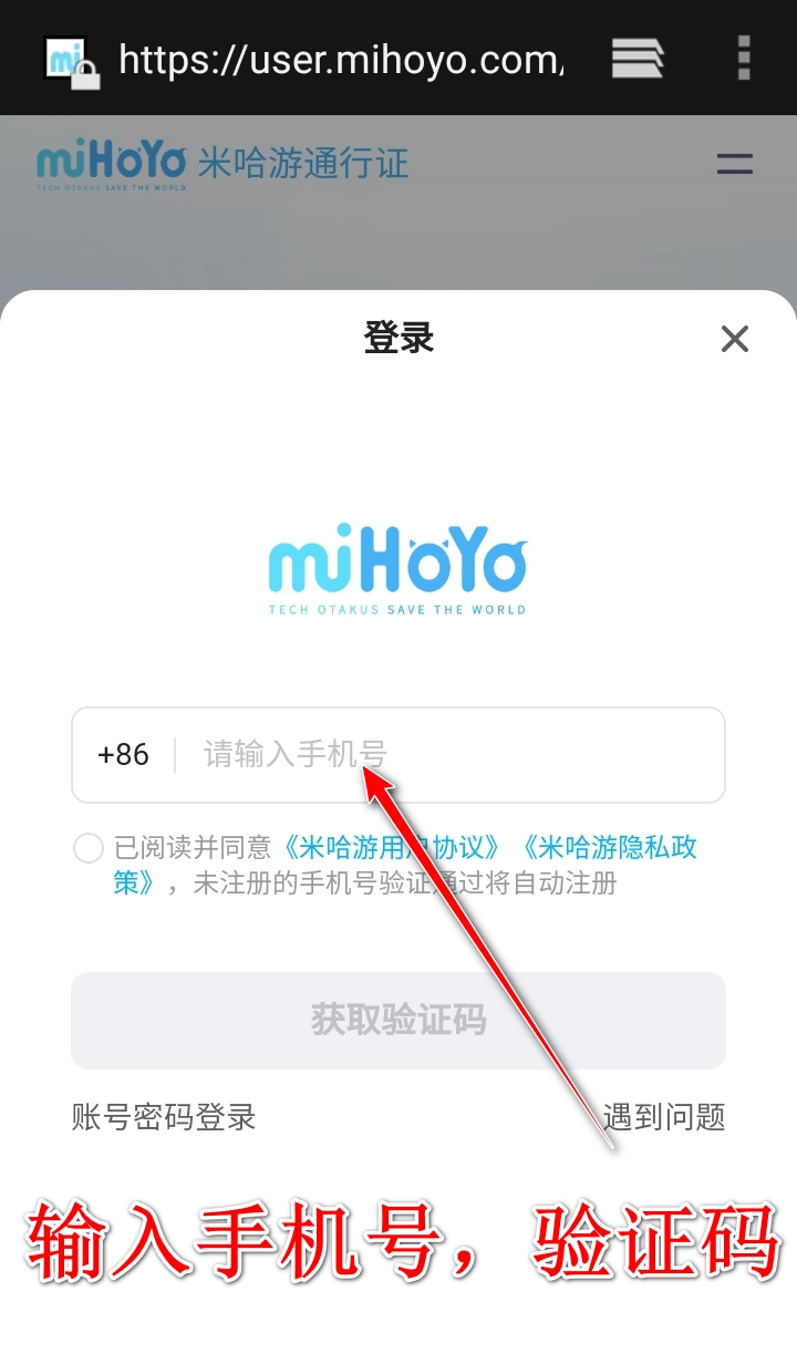 1、手机在浏览器中进入页面,输入手机号验证登录后。