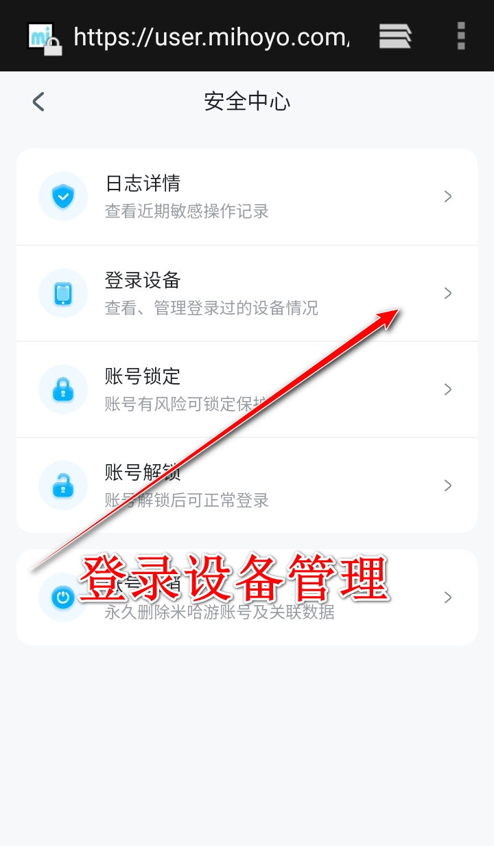 3、然后在安全中心点击"登录设备"。