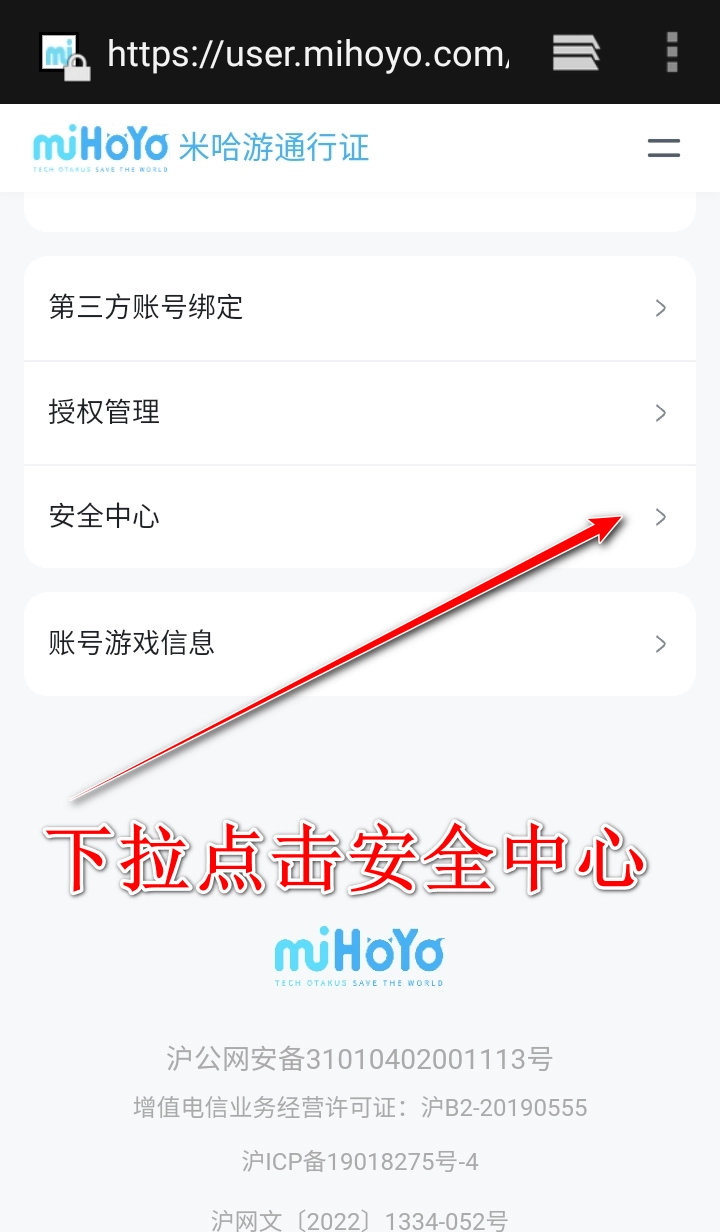 2、在设置页面点击"安全中心"。