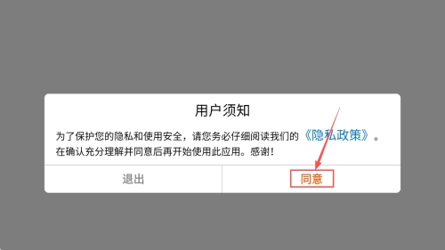 1、同意用户须知:点击“同意”按钮,接受用户须知和隐私政策。