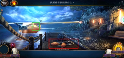 1、在密室逃脱22海上惊魂中首先拿到下图红框里的浮标和绳子,然后对绿框的飞机使用绳子,点击飞机门,放大,进入得到公文包。