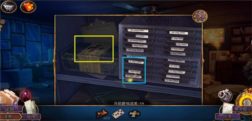 10、后院保安室正下方的门需用门禁卡(卡片)刷卡开启,进入后直接进行小游戏,解法参考下图,注意红框需在黄框移除后才能获取。完成小游戏可获得勋章盒子,打开后先查看盒内照片获取证据,再点击中间的勋章即可得到勋章。