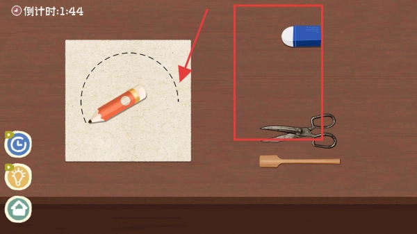进入游戏场景后,按照系统的提示来操作,像使用剪刀、橡皮擦这类工具,完成手工制作的任务,以此积累分数,推动游戏进程向前发展。