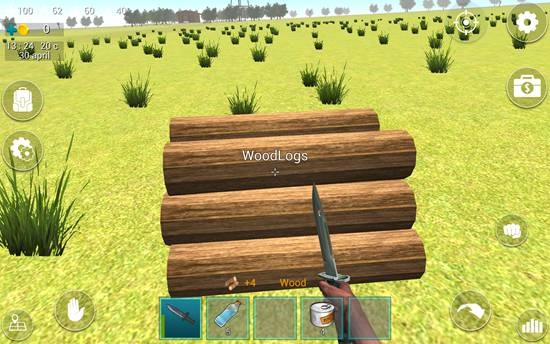 小编还碰到了木材堆,用匕首去攻击的话,一次能得到4个木材,没一会儿就能攒够99个了。