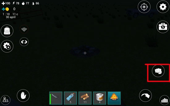 点击道具栏里的火堆,它就会出现在我们手中,接着把它放到合适的位置,再点击屏幕右侧的“拳头”攻击按钮,就能将火堆安放好了。